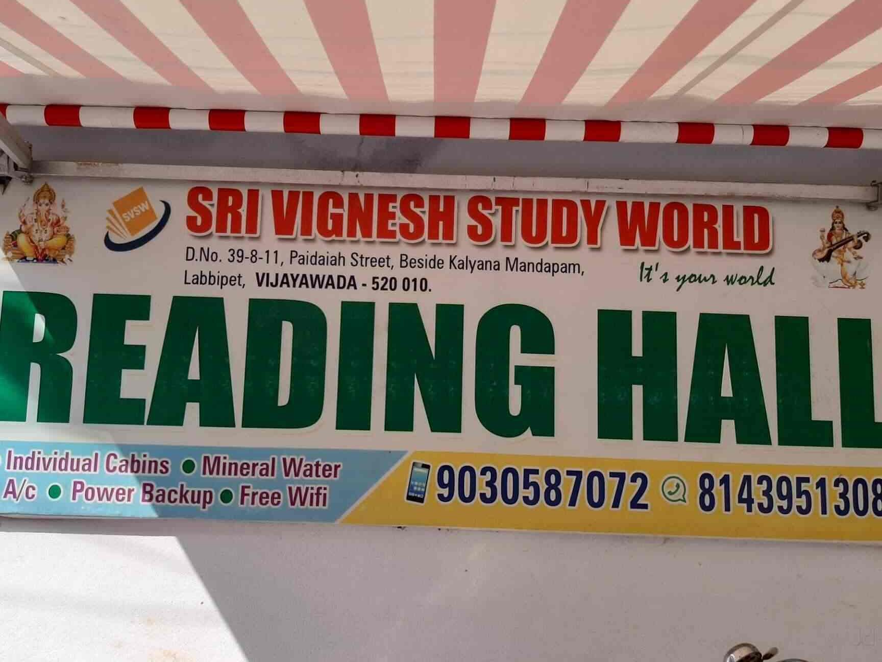 Sri Vignesh Study World is a premier library situated at Door No: 39, 8-11, Paiddaiah Street, Labbipet, Vijayawada, Andhra Pradesh 520010, India, offering a serene environment for students in the Rewa region to access extensive study resources and quiet reading spaces.