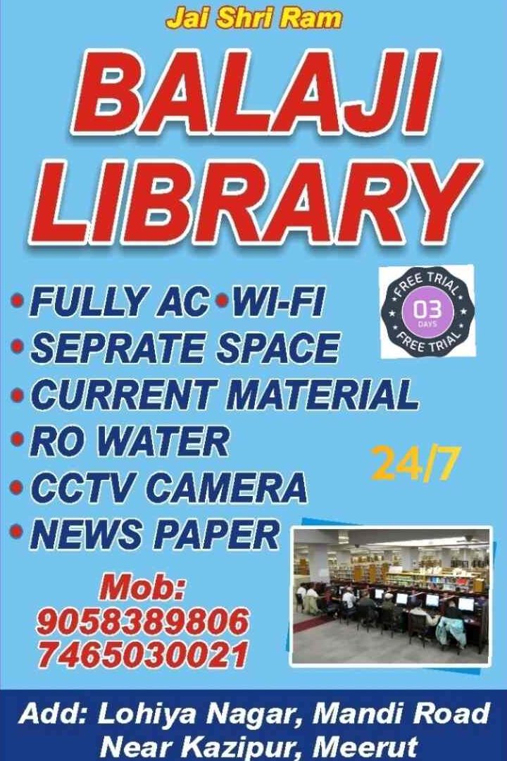 BALAJI LIBRARY LOHIYA NAGAR MEERUT, strategically situated on Mandi Road in C Block, provides a highly conducive environment for focused study and academic preparation. Its prime location in Lohia Nagar, Meerut offers exceptional accessibility for students. The facility is well-regarded for its extensive collection of competitive exam materials and a peaceful, well-organized atmosphere that promotes maximum productivity, making it a preferred choice for serious aspirants in the region.